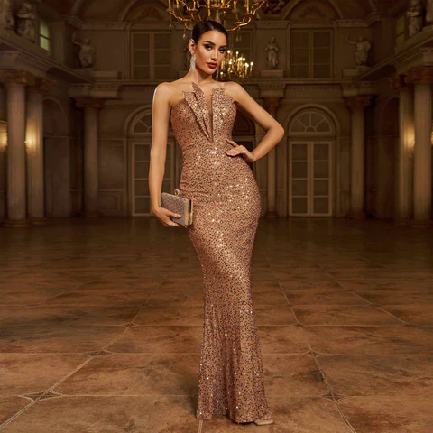 SPU: GM00588Detail: Backless. Panel. A-lineSleeve: Long sleeveFabric: SequinMaterial Composition: 100%POLYESTERFit Type: Regular FitStretch: Slight St..